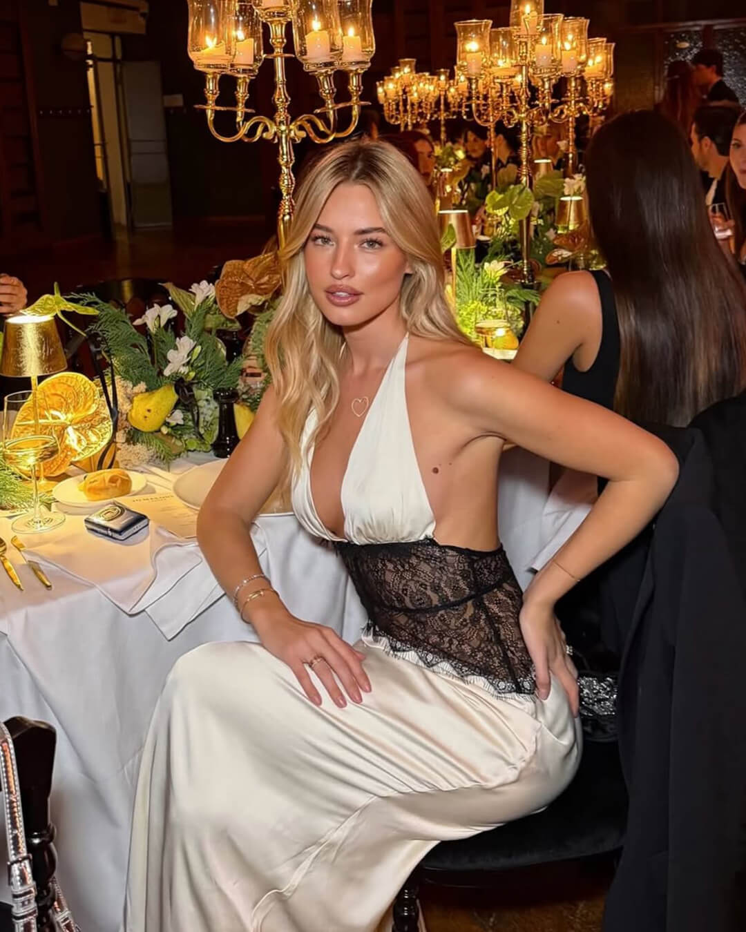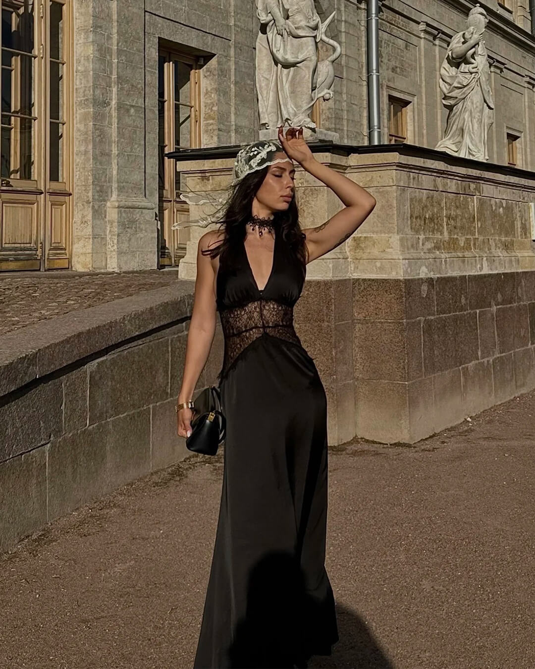 Discover the perfect blend of elegance and style with this stunning Astrid Satin Lace Waist Backless Dress. Featuring a deep V-neck and lace halter design, this backless evening dress is ideal for summer parties and special occasions.