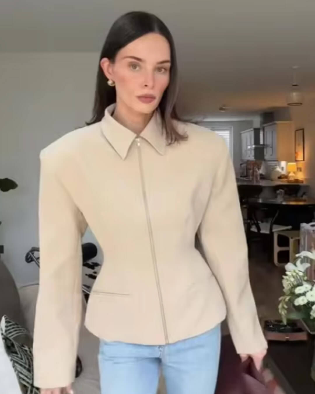 Hazeline Zip-Up Cinched Waist Jacket