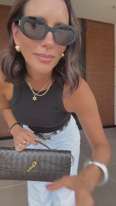 Introducing our Bianca Woven Bag, a sophisticated piece that showcases the house’s signature leather craftsmanship and meticulous attention to detail. Expertly crafted from premium vegan leather, it features a beautifully woven texture enhanced by a unique knot tie detail with a polished gold-tone toggle fastening, adding a touch of refined elegance. Its compact yet practical size is designed to fit your essentials — from your phone to a cardholder and lipstick — making it the perfect companion for events, dinners, and special occasions when you prefer to travel light. Combining timeless style with sustainable materials, the Bianca Woven Bag is a must-have accessory for the modern, eco-conscious wardrobe.