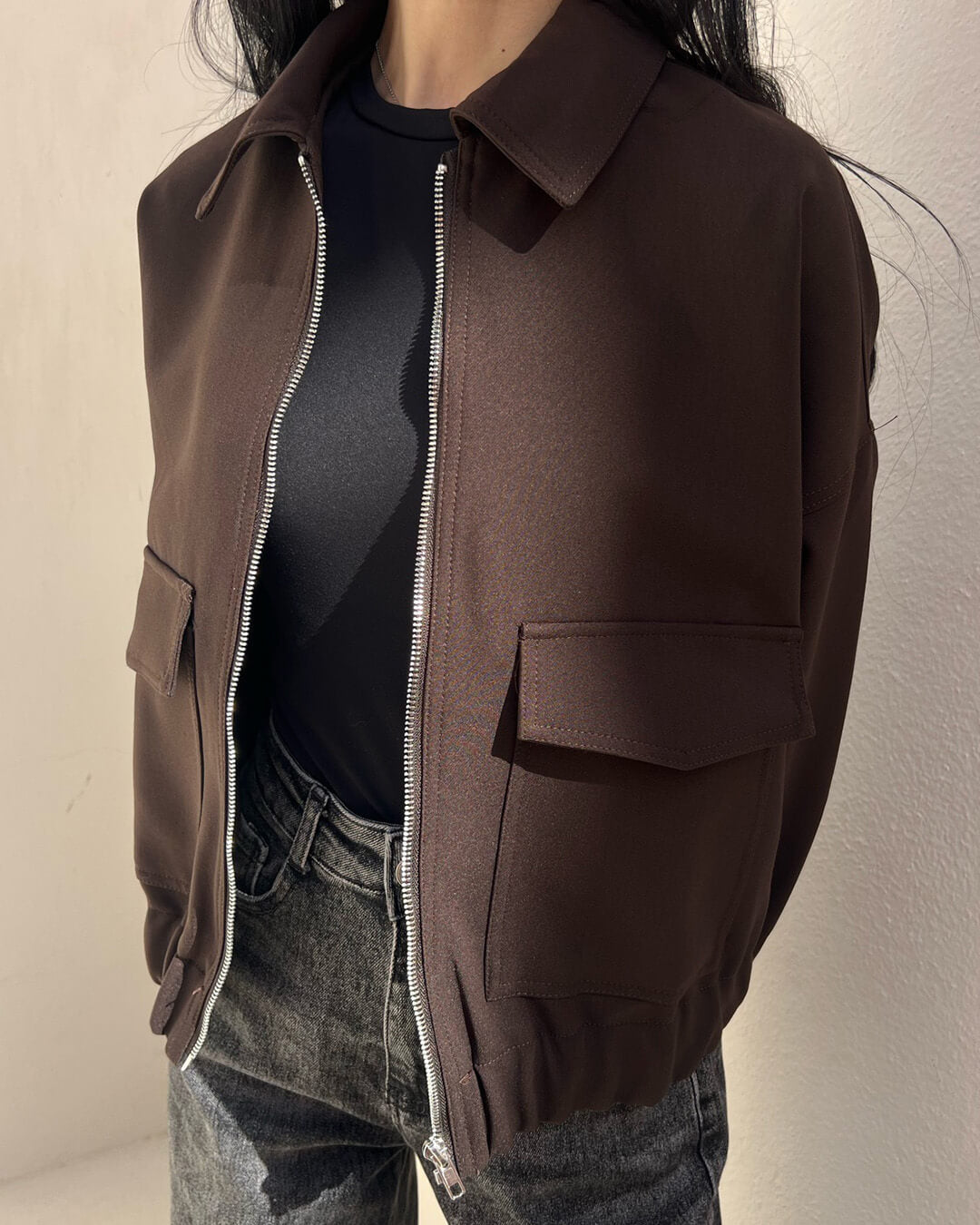 • Modern Utilitarian Design: Functional flap pockets add a sophisticated, architectural element to the classic bomber shape.